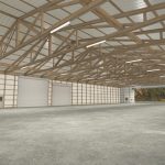 American Midwest Cold Storage with big central hydraulic door, roller doors and man doors on sides.