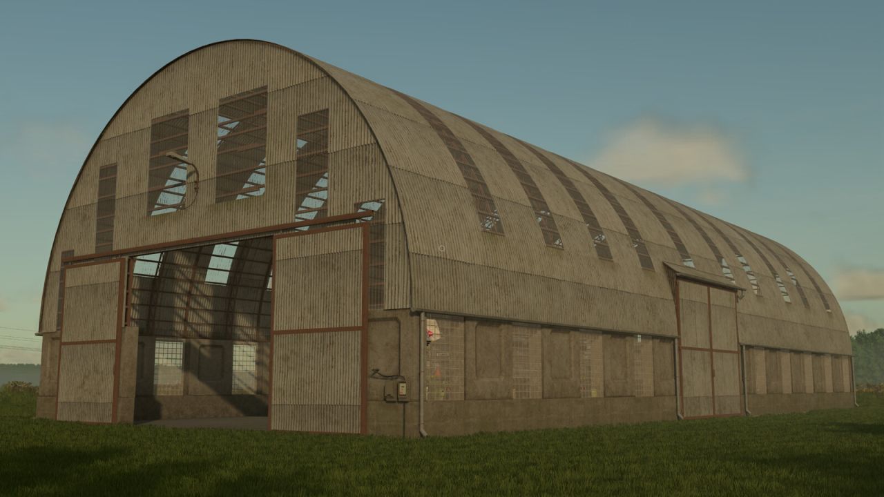 Storage hall for machinery or grain. The hall has a removable door.