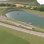 Terrain near portable toilets, small lake leveled