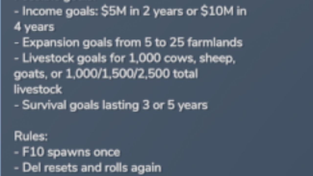 1,000 / 1,500 / 2,500 livestock goals