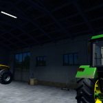 Large garage for storing machines.