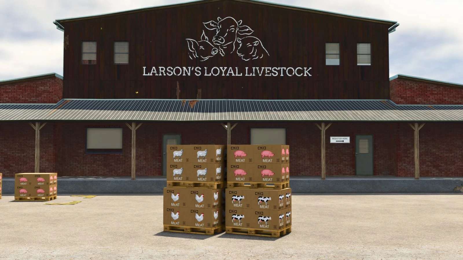 The butcher shop processes cows, pigs, sheep/goat, chickens into meat.