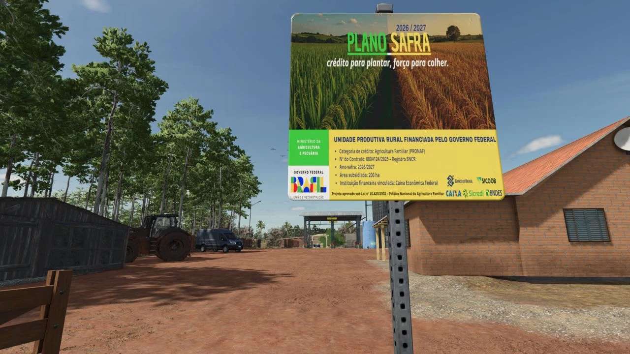 This mod adds decorative and functional plates that represent the Plan Program Safra, simulating rural subsidies funded by the federal government.