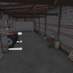 High garage with white bricks