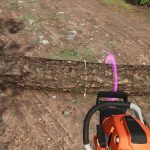 The chainsaw will snap to the indicated location once within 20cm. The angle still has to be adjusted manually, however.