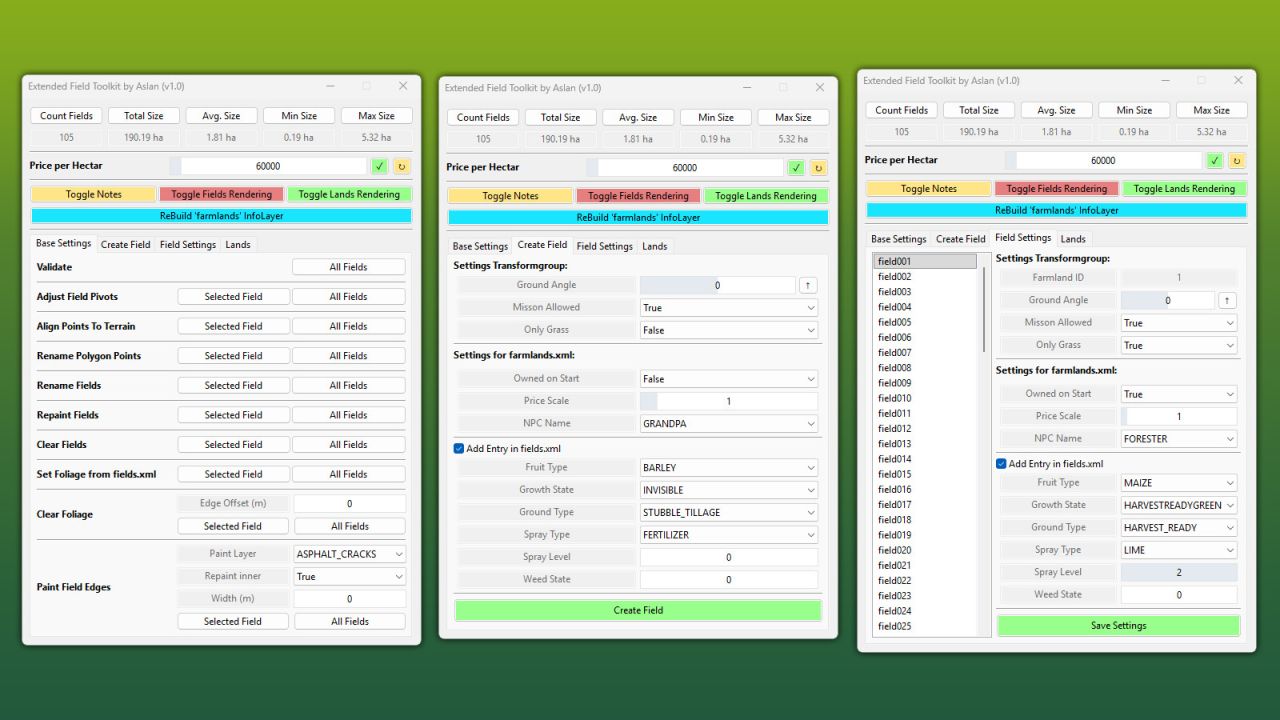 The Extended FieldToolkit expands the standard GIANTS FieldToolkit with a wide range of new features and an improved debug view, making it significantly easier to create and manage fields.