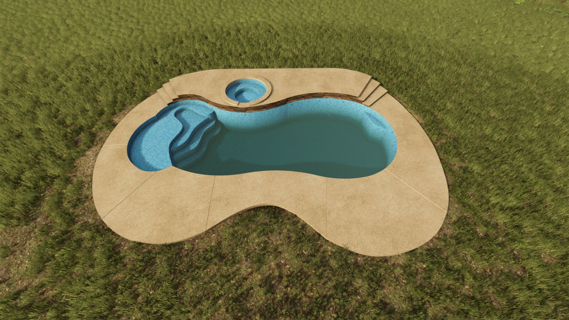 After purchasing the pool and placing it in the desired location, lower the ground level at the water location.