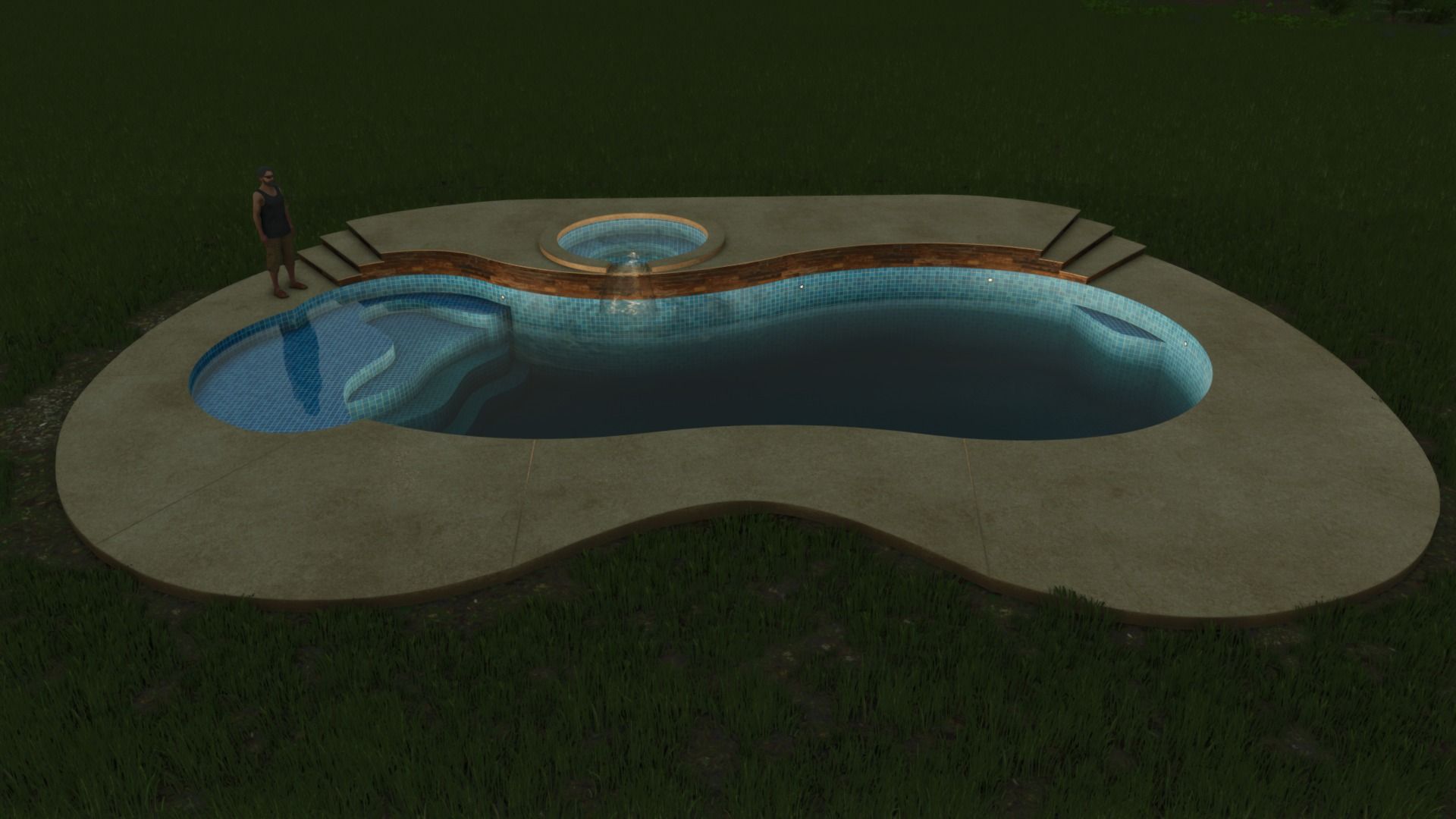 The pool features:
