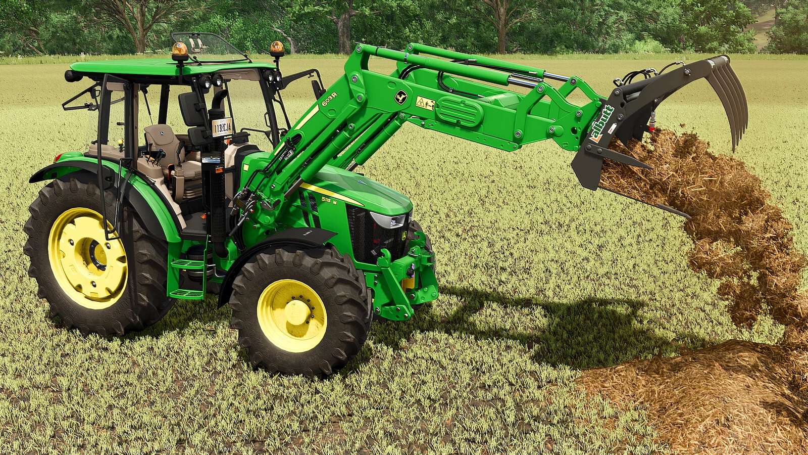 This pack includes the powerful John Deere 5M Series, along with the John Deere 603R front loader.