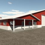 Metal shed with living, work and storage area.