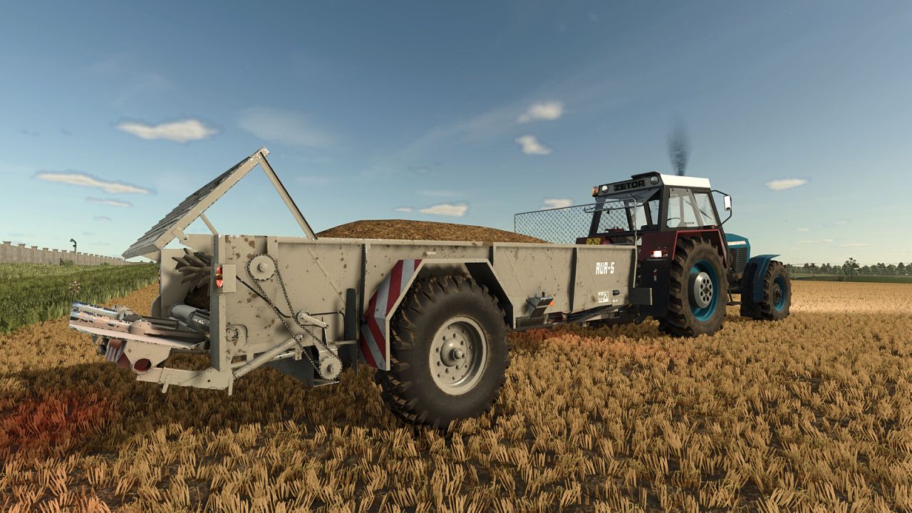 Manure speader RUR-5 is intended for the transport and spreading of solid farm fertilizers, especially manure, compost and slurry. Lenght: 6 600 mm, weight: 2 270 kg, slope accessibility: 12%, workind speed: 2 – 10 km/h