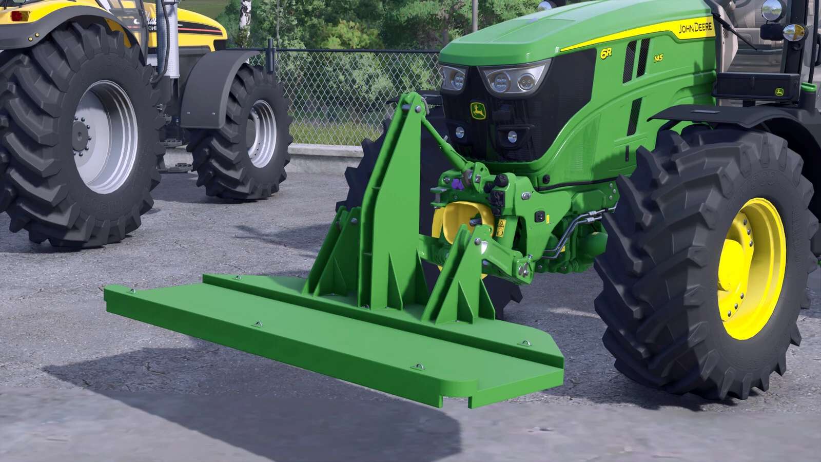 A small platform attachable to the tractor for easily transporting a motorcycle. Fully color customizable.