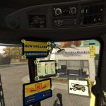 Interior IC: Fold the ladder in/out, turn all monitors on/off, switch between 4 displays on the main monitor (which also have ICs), turn the beacon on/off, lights Front/rear auger on/off, windshield wipers wipe once, grain tank open/close, engine start/stop, threshing drum (cutter) on/off, auger fold/unfold.