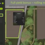 Once this mod is activated, from the next planting onwards you will no longer need to roll the crops to keep the productivity bonus. The rolling option will still appear in the game menu, but it is no longer required.