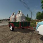 It is a Polish home-made car trailer with wooden sides. It can be used to transport bulk materials, bags, pallets and bales. It has a color configuration of the frame, boards and rims. It has working lighting. The tailgate in the unfilled configuration opens using Interactive Controls.
