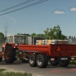 The trailer performs the function of a dump truck. It is designed specifically for excavators, but can also be used for transporting with an ordinary tractor.
