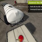 To refill the IBC tank you need enter it (like a vehicle), you need to get close (~1m) to the tank to be able to enter. When filled the IBC tank works just like any regular IBC pallet.