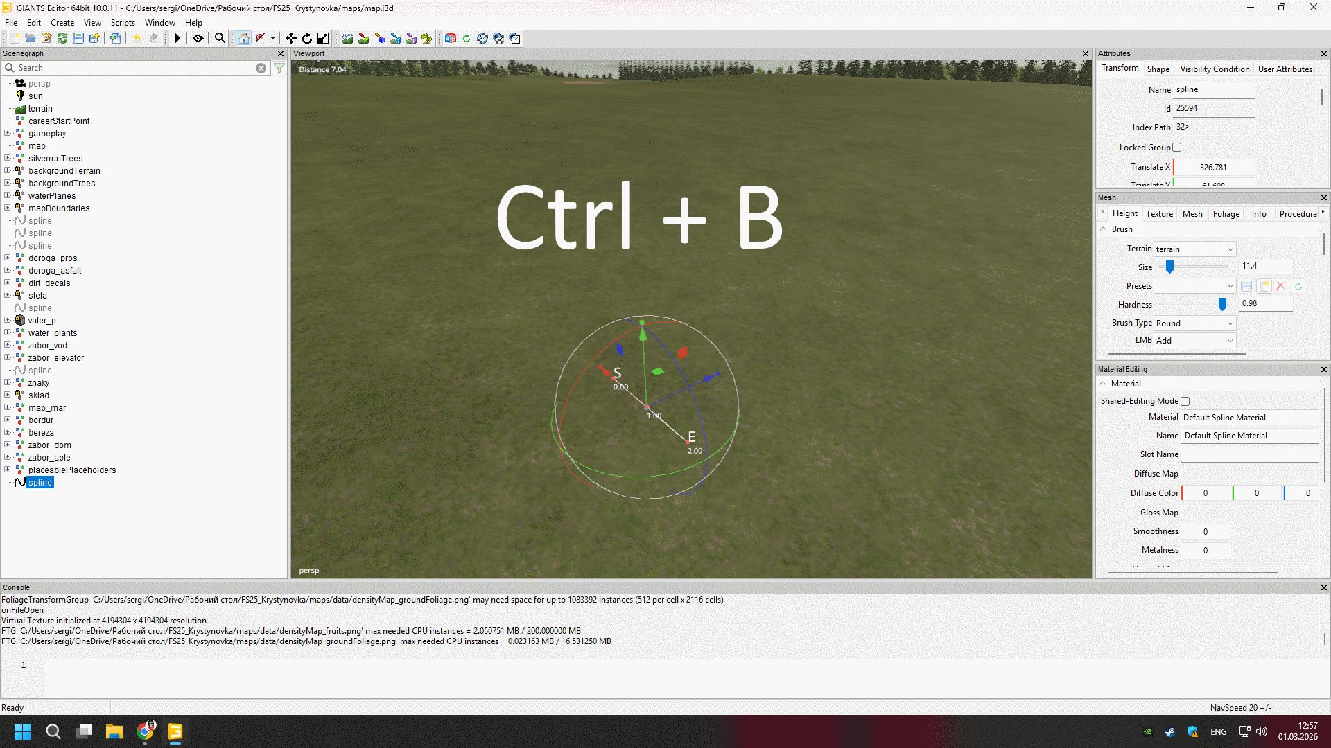 (Creating a river using a spline in Farming Simulator 25 via GIANTS Editor)