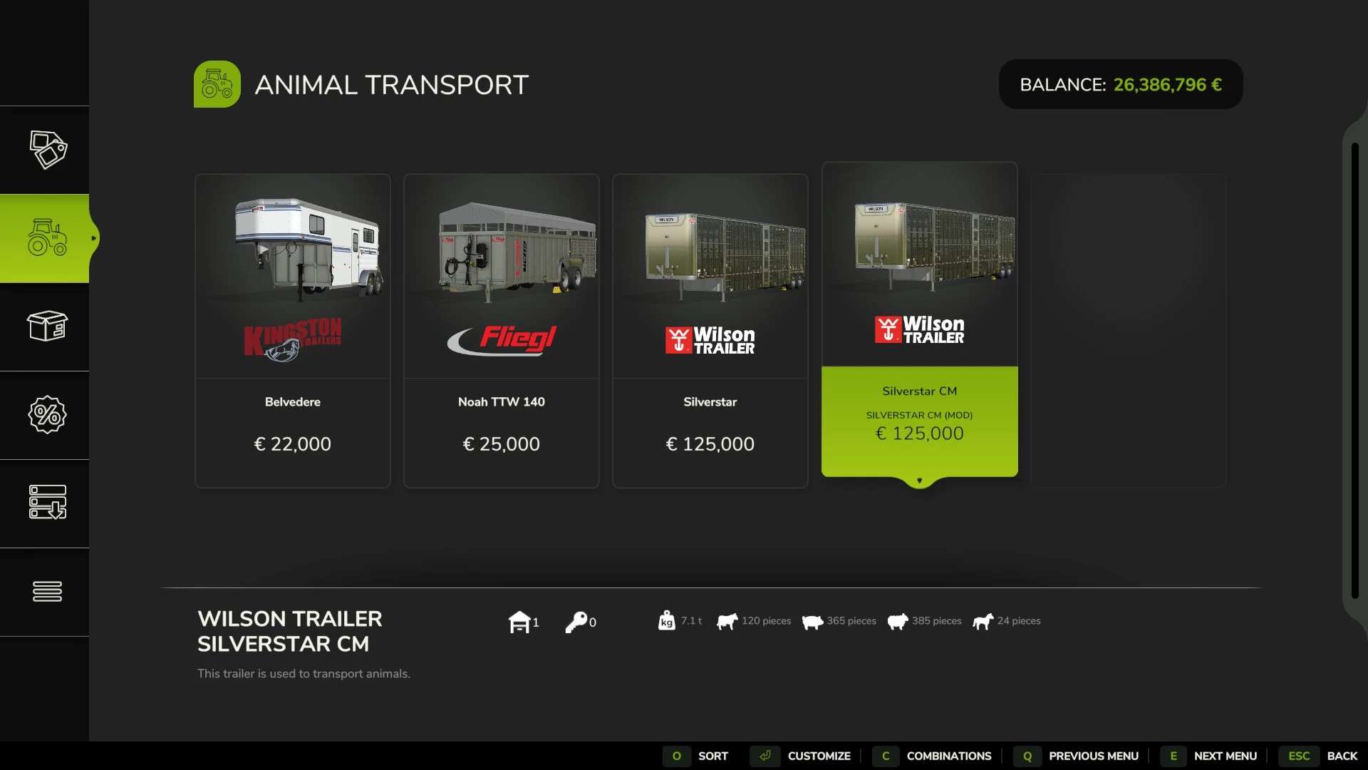 I modded the ingame Semi animal trailer to hold alot more animals, also added the ability to haul Horses. Yes, the numbers of animals this huals are borderline unrealistic, however they are more realistic than the semi trailers only hauling 12 cows. I personally live on a cattle ranch and we fit 12 or more in a pickup truck pull behind trailer.