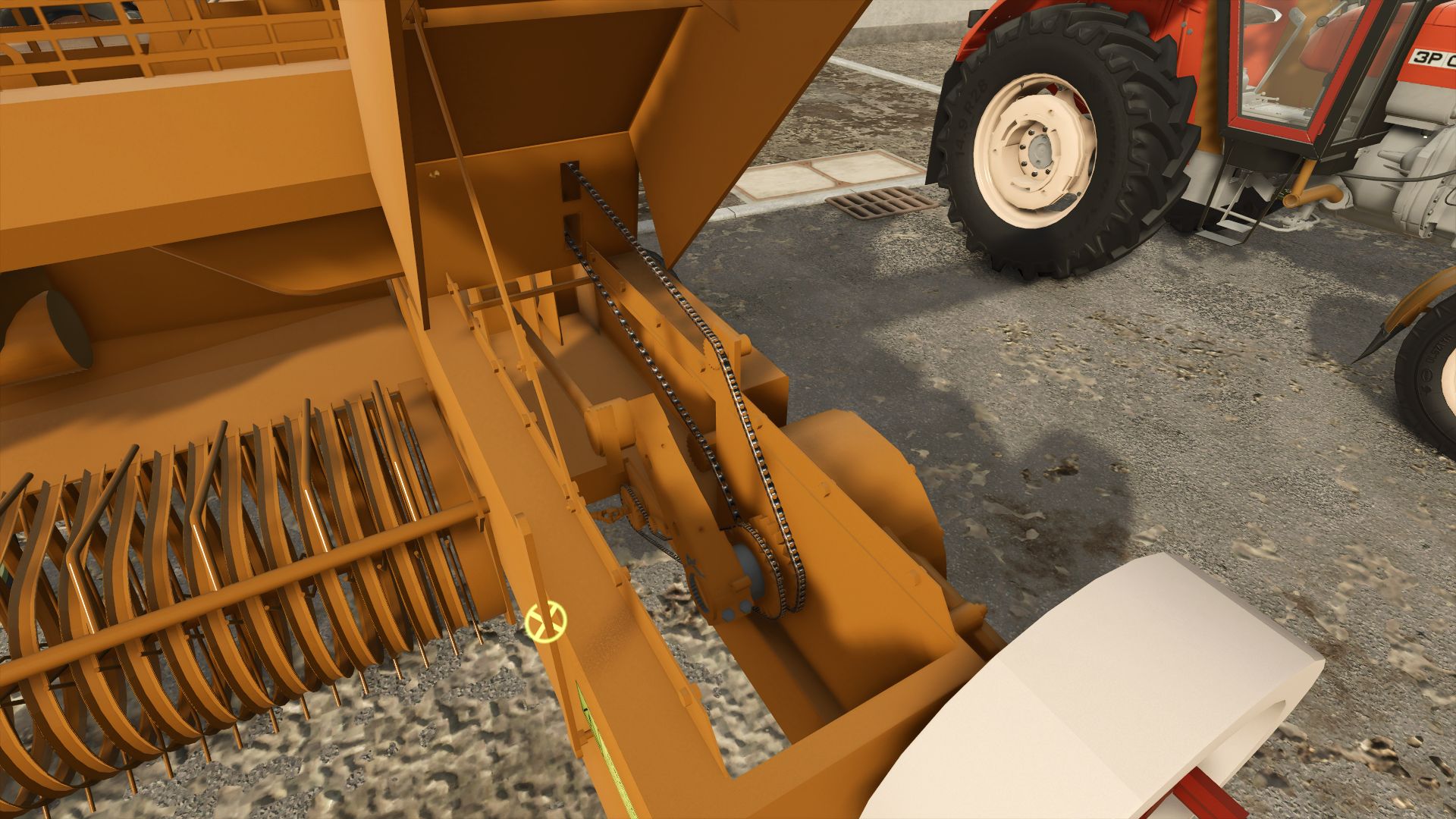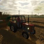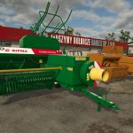 This is a Polish square baler licensed by the German Fahr, manufactured since 1978 in Lublin. This is a convertible from FS19, the model of which has undergone significant modernization. The piston and pick-up drive gear mechanism has been significantly improved and made more realistic – its model and animation have been developed in much greater detail. The arrangement of spacers in the string chamber has also been changed, and many movable sprockets and chains have been added. The modification has 4 color configurations: frame, rims, interior of the flywheel, exterior of the flywheel and 17 other configurations: Model (there is a PK 4000 Kostka), wheel configurations (in addition to the original ones, there are also car wheels), rear hitch, pick-up cover, elements on the rear flap of strings (including a triangle), reel cover, feeder, model stickers, chain pictogram, camera flap stickers binding, bale length adjustment stickers, speed limit sticker, pressure sticker, lubrication sticker, front stickers, drawbar stickers, visual strings, PTO shaft cover. The press also has Interactive Control activation points and original sounds.