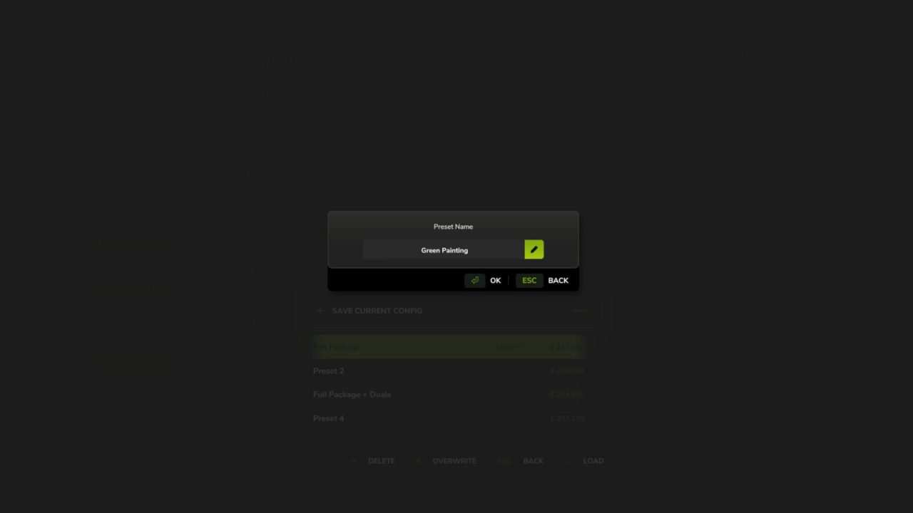 Add a touch of convenience to your game by saving your favorite vehicle configurations. Instead of manually configuring complex setups with colors, wheel brands, and engine options every time you buy a vehicle, you can now save them as presets for quick and easy access.