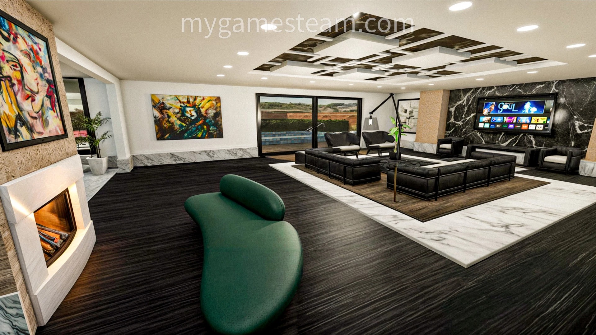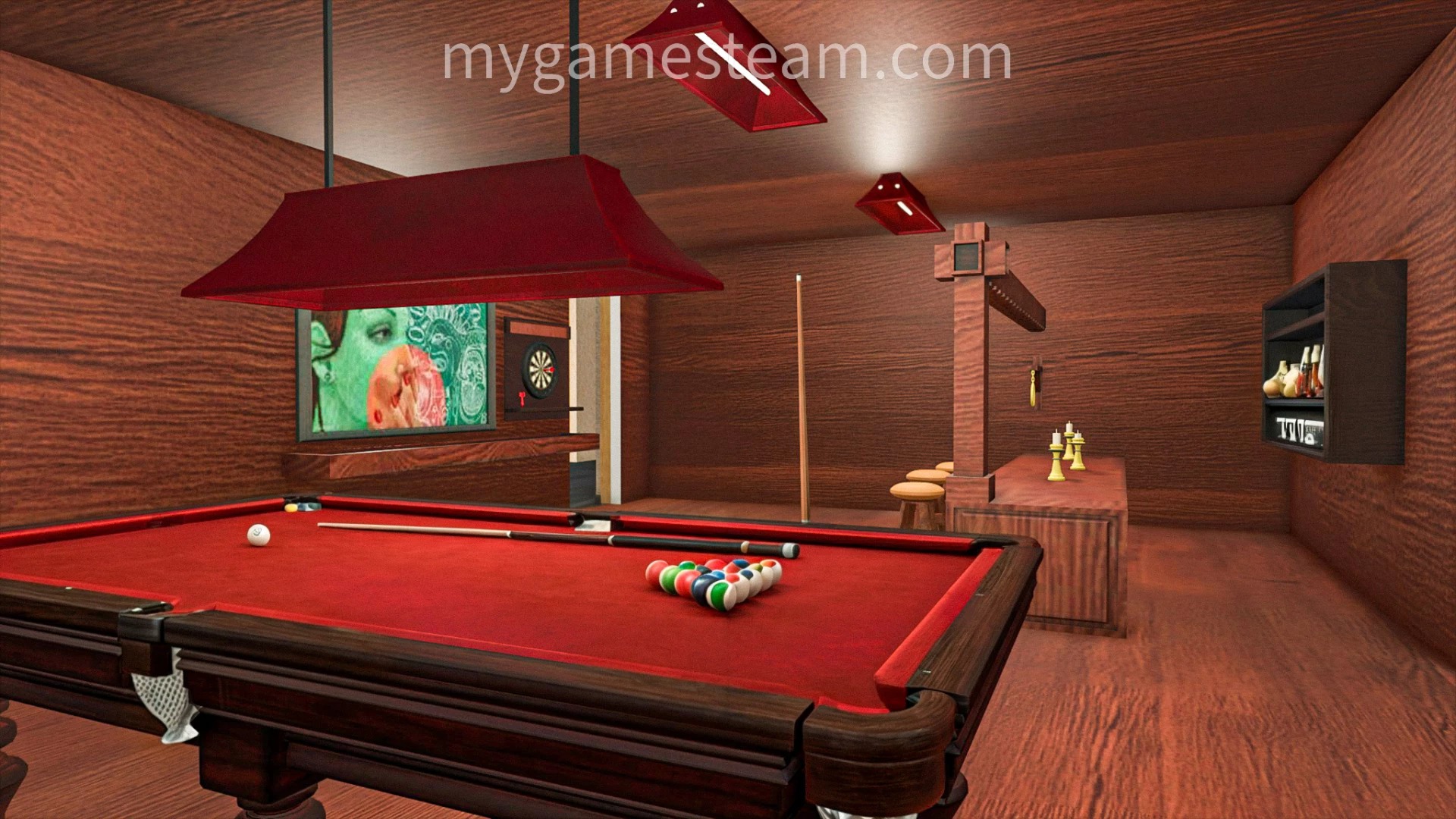– Game room with pool table and bar